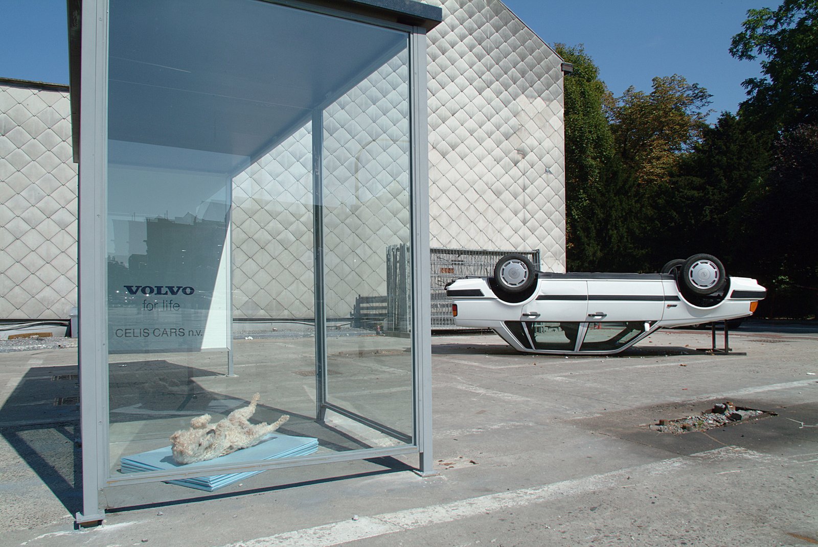 Since 2005, Gert Robijns has been developing Reset projects in South Limburg, Belgium. The direct trigger was an incident during the exhibition Delicious, where the work Summer Love was damaged. The installation, consisting of a car placed upside down and a stuffed dog lying on its back inside a small vehicle, was misunderstood by the local community and physically altered.